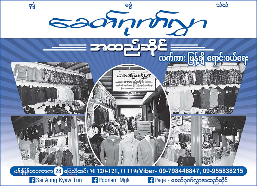 - M-120-121, O-119, G Flr, Man Myanmar Plaza, 28,(အမွတ္ အမ္(မ္)-၁၂၀-၁၂၁၊ အို-၁၁၉၊ ေျမညီထပ္၊ မန္းျမန္မာပလာဇာ၊ ၂၈၊)