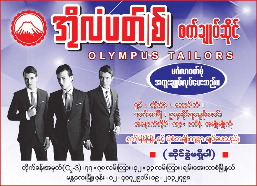 - ႐ွပ္၊ တိုက္ပံု၊ ေဘာင္းဘီ၊ ကုတ္အက်ႌ၊ ဌာနဆိုင္ရာယူနီေဖာင္း၊ အေနာက္တိုင္း က်ားဝတ္စံုအမ်ိဳးမ်ိဳးကို ရက္ျမန္ျမန္ႏွင့္ပံုစံအခ်ိဳးက်စြာခ်ဳပ္ေပးပါသည္။