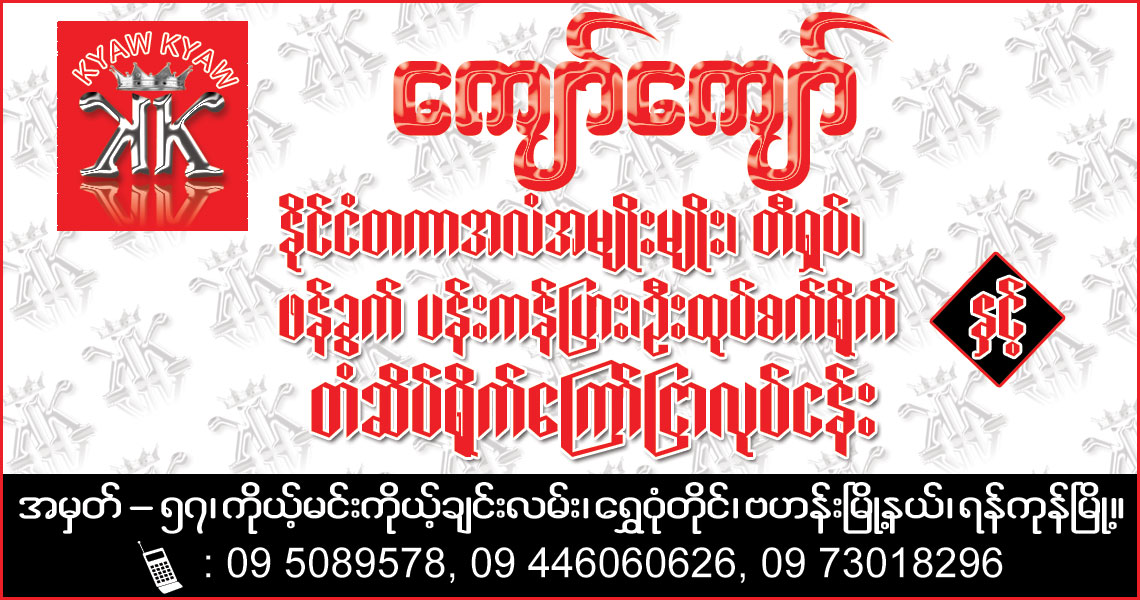 - 57, Koh Min Koh Chin Rd., Shwe Gon Daing,(အမွတ္ ၅၇၊ ကိုယ့္မင္းကိုယ့္ခ်င္းလမ္း၊ ေ႐ႊဂံုတိုင္၊)