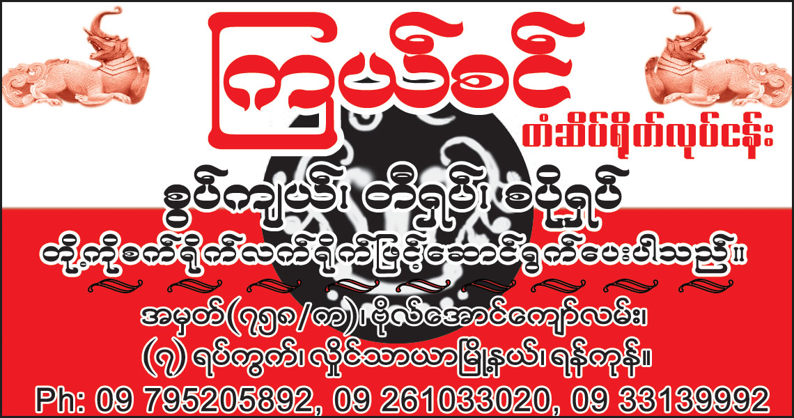 • စြပ္က်ယ္၊ တီ႐ွပ္၊ စပို႔႐ွပ္တို႔ကိုစက္႐ိုက္လက္႐ိုက္ျဖင့္ေဆာင္ရြက္ေပးပါသည္။