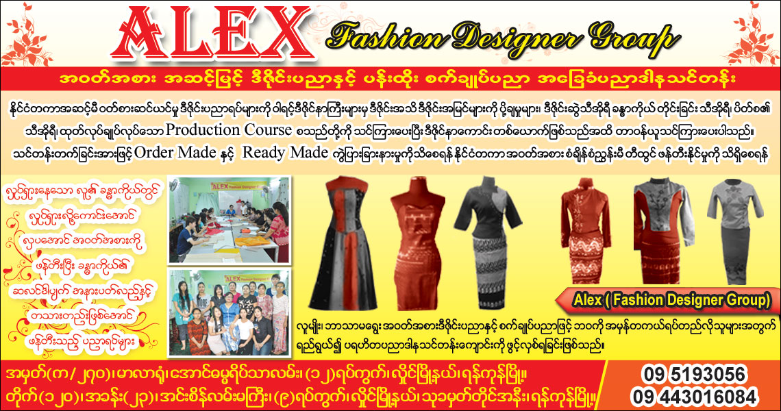 - လူမ်ဳိးဘာသာမေရြး အဝတ္အစားဒီဇုိင္းပညာႏွင့္ စက္ခ်ဳပ္ပညာျဖင့္ ဘဝကုိ အမွန္တကယ္ရပ္တည္လုိသူမ်ားအတြက္ ရည္ရြယ္၍ ပရဟိတပညာဒါန သင္တန္းေက်ာင္းကုိ ဖြင့္လွစ္ျခင္း ျဖစ္သည္။ လႈပ္ရွားေနသည့္ လူ၏ခႏၶာကုိယ္တြင္ လႈပ္ရွားလုိ႔ ေကာင္းေအာင္၊ လွပေအာင္ အဝတ္အစားကုိ ဖန္တီးၿပီး ခႏၶာကိုယ္၏ ဆလင္ဒါပ်က္ အနားပတ္လည္ႏွင့္ တစ္သားတည္းျဖစ္ေအာင္ ဖန္တီးသည့္ ပညာရွင္မ်ား