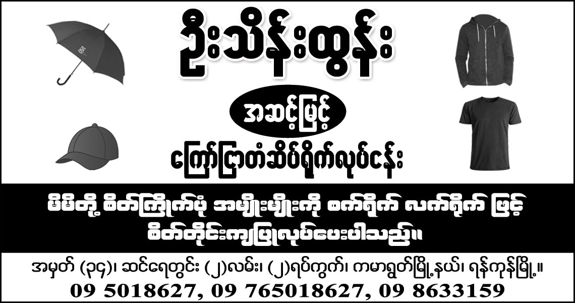 - မိမိတို႔စိတ္ႀကိဳက္ပံုစံအမ်ိဳးမ်ိဳးကို စက္႐ိုက္၊ လက္႐ိုက္ျဖင့္စိတ္တိုင္းက် ျပဳလုပ္ေပးပါသည္။