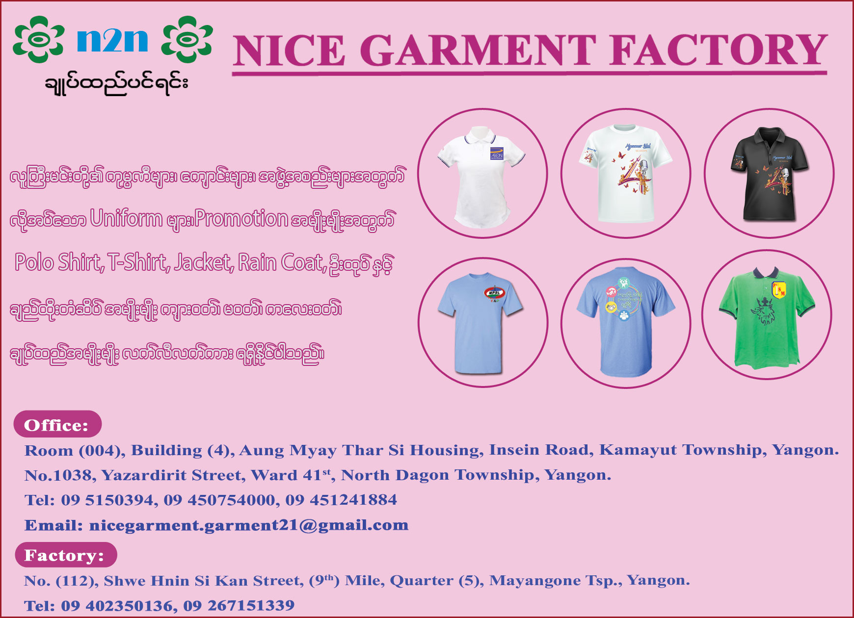 • Promotion အမ်ဳိးမ်ုိးအတြက္ Polo Shirt, T-Shirt, Jacket, Rain Coat ဦးထုပ္ႏွင့္ ခ်ည္ထုိးတံဆိပ္အမ်ဳိးမ်ဳိး