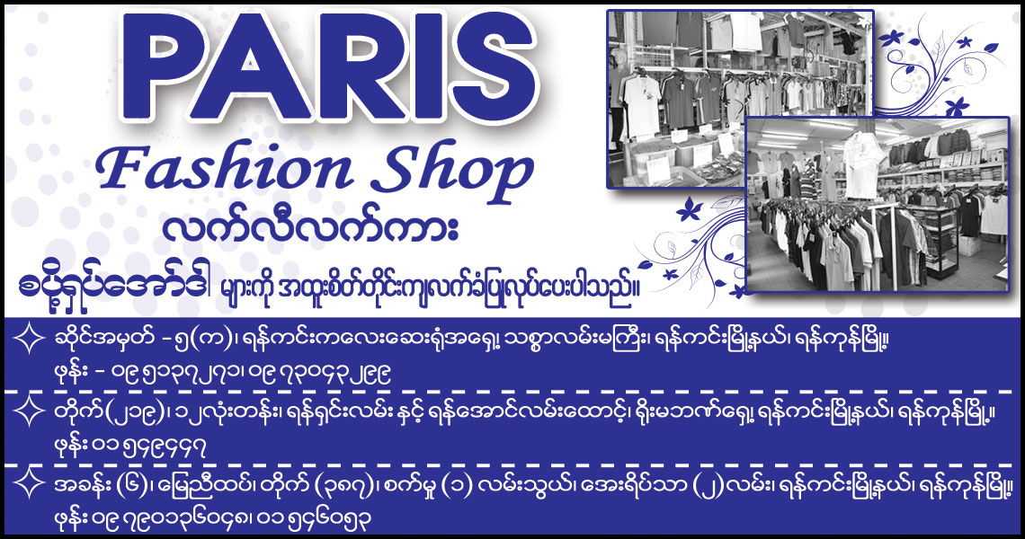 - 5-Ka, Thitsar Rd., East Yankin Children Hospital,(အမွတ္ ၅/က၊ သစၥာလမ္း၊ ရန္ကင္းကေလးေဆး႐ံု အေရွ႕ဘက္၊)