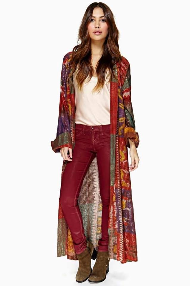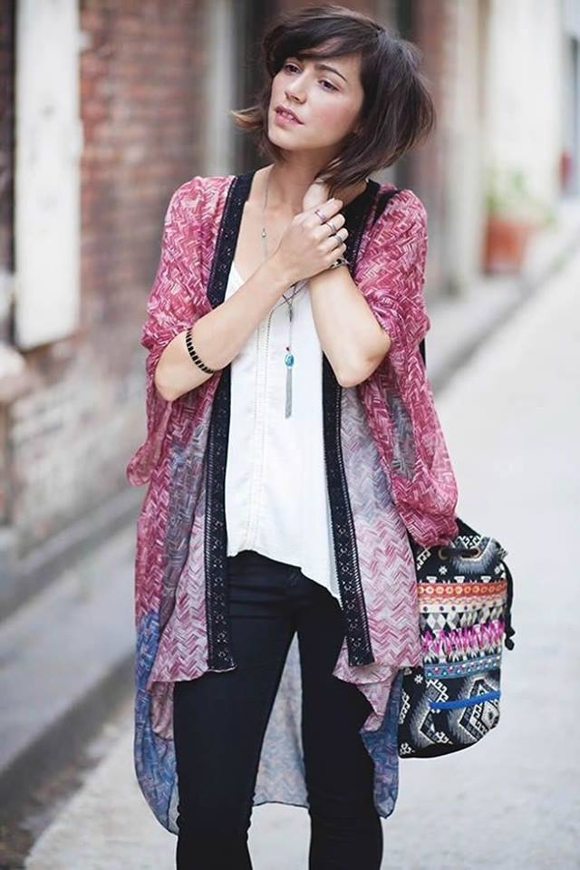 ေဖ်ာ္ေျဖပြဲမ်ိဳးကို ဝတ္သြားဖို႕ဆိုရင္ေတာ့ Kimono အတို ထက္အရွည္က ပိုမိုက္ပါတယ္။ သူ႕ကိုမွ အထဲက band tee ေလးေတြနဲ႕ ေဘာင္းဘီတိုေလးေတြ တြဲဝတ္ျပီး ေအာက္က boot ဖိနပ္ေလးေတြ စီးတာ၊ sandal ဒါမွမဟုတ္ ဒူးမေရာက္တေရာက္ Gladiator sandal ေလးေတြစီးရင္ လည္း မိုက္တာပါပဲ။