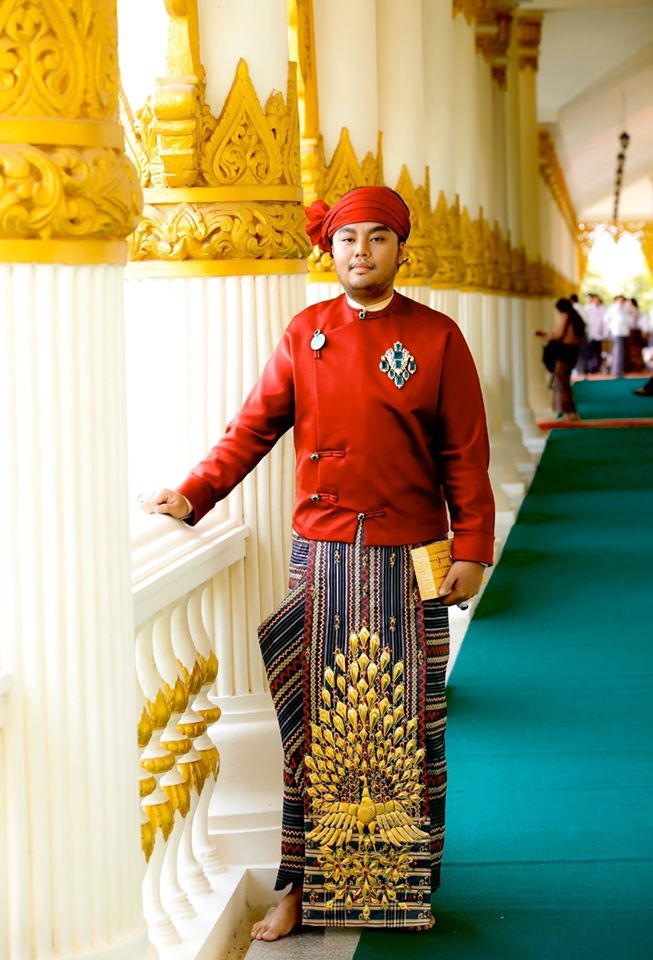 ျမန္မာ့ေခတ္အဆက္ဆက္ မင္းခမ္းမင္းနားမ်ားတြင္ဝတ္ဆင္ေလ့ရွိတဲ့ ေဒါင္းဝတ္လဲေတာ္ေ႐ႊပုဆိုးကို နမူနာယူကာ ေဒါင္းကို ေ႐ႊအစစ္