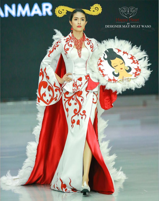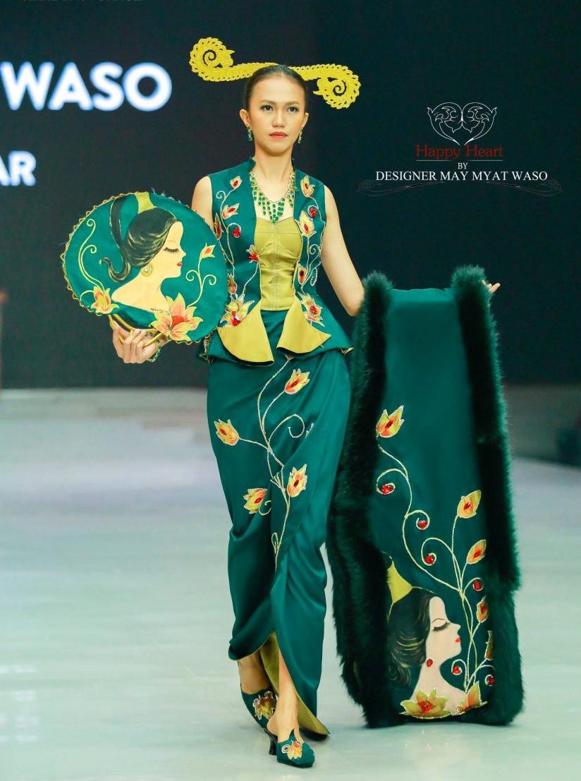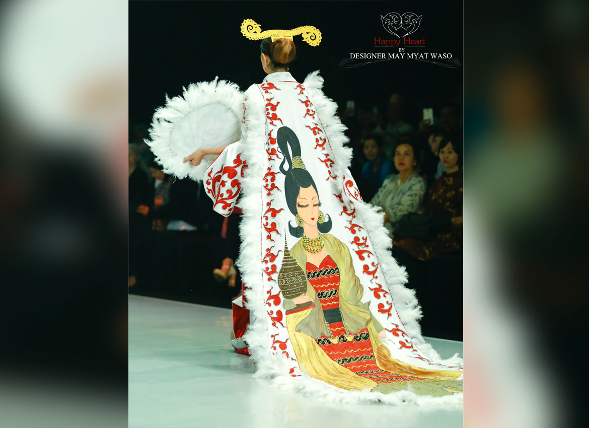 သြားေရာက္ျပသတာက ဖြင့္ပြဲေန႔မွာ ျပသခဲ့တာပါ။ ဝတ္စံုေပါင္း ၁၂ စံု ျပသခဲ့ၿပီး အင္းဝေခတ္ကို အေျခခံထားတဲ့ ဝတ္စံုေတြကို ျမန္မာမႈ လက္မႈပညာမ်ားနဲ႔ ဖန္တီးထားတဲ့ ေရႊခ်ည္ထိုးနဲ႔ ပန္းခ်ီလက္ရာေတြနဲ႔ ေပါင္းစပ္ျပသခဲ့ပါတယ္။