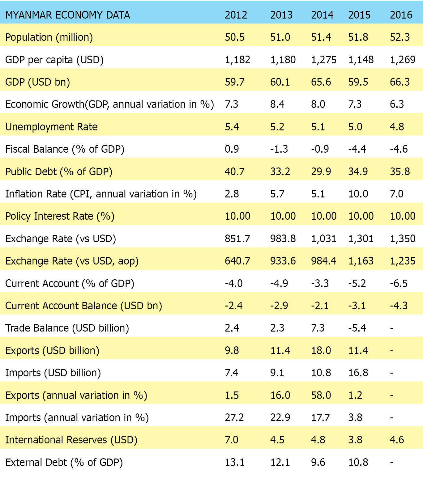 ဘဏ်လုပ်ငန်းကဏ္ဍမှာ ကြွေးဆုံးချေးငွေ များ ရှိလာခြင်း၊ ပုဂ္ဂလိကကဏ္ဍတွင် ချေးငွေများ ရယူမှု မြင့်တက်လာခြင်းတို့ကို ရေတိုပြဿနာ များအဖြစ် ရင်ဆိုင်ဖြေရှင်းနေတယ်Focus Economics ရဲ့ ခန့်မှန်းချက်က ၂၀၁၈ ခုနှစ်မှာ စီးပွားရေး ၆.၄% ရရှိမယ်လို့ ဆိုပါတယ်။