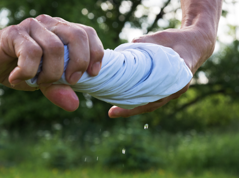 မျက်နှာသုတ်ပုဝါထဲမှာ လျှော်ပြီးသားအဝတ်ကို ဖြန့်ပြီးထည့်ကာ မိနစ်အနည်းငယ်လောက် သေချာဖိပြီး လိပ်ထားလိုက်ပါ။ ပြီးရင် ထိုလိပ်ထားတာကို အားရှိသလောက် ညှစ်ချလိုက်တဲ့အခါ အဝတ်ထဲမှာရှိတဲ့ရေတွေ အနည်းငယ်တောင် မကျန်စေဘဲ ရေစင်သွားမှာပါ။ အဲ့ဒီနောက် ထိုအဝတ်ကို လှမ်းပြီး သိပ်မကြာခင်မှာပဲ ခြောက်သွားပါလိမ့်မယ်။