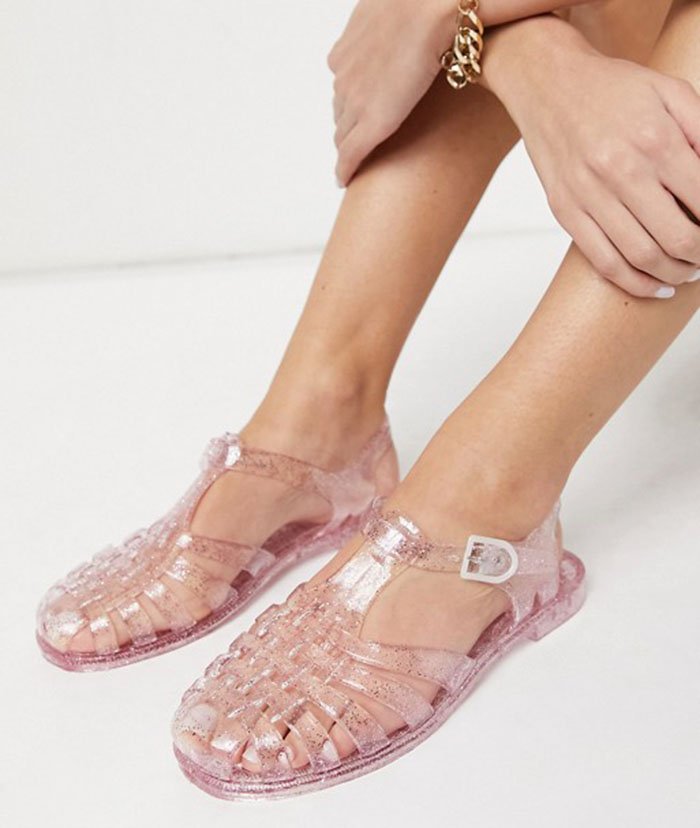 PVC ပလတ်စတစ်သားနဲ့ လုပ်ထားတာမို့ မိုးစိုခံပါတယ်။ Glitter အမှုန်လေးတွေပါတဲ့ Jelly ဖိနပ်လေးတွေဆို မိန်းကလေးဆန်ဆန် လှချင်သူတွေအတွက် လုံး၀ကွက်တိပါဘဲ။