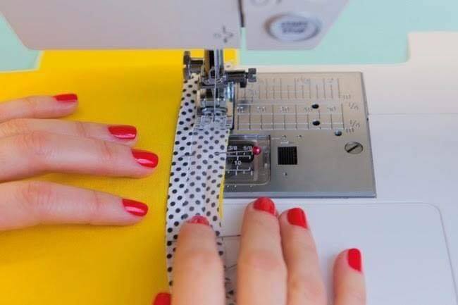 ေခါက္ထားတဲ့ အေပၚကေန စက္ေလးနဲ႔ နင္းလိုက္ပါ။ ကြပ္ထားတဲ့ အနားေလးက ေသသပ္ လွပၿပီး စနစ္က်ေနမွာပါ။