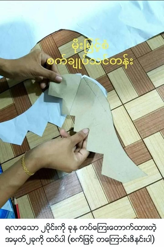 ရလာေသာ အပိုင္းေလးကို ပိတ္စကို အလွခ်င္းပူး၍ တင္ညွပ္ပါ ၂ခုရပါမည္(ကြတ္စာမ်ား လုပ္ရပါမည္)