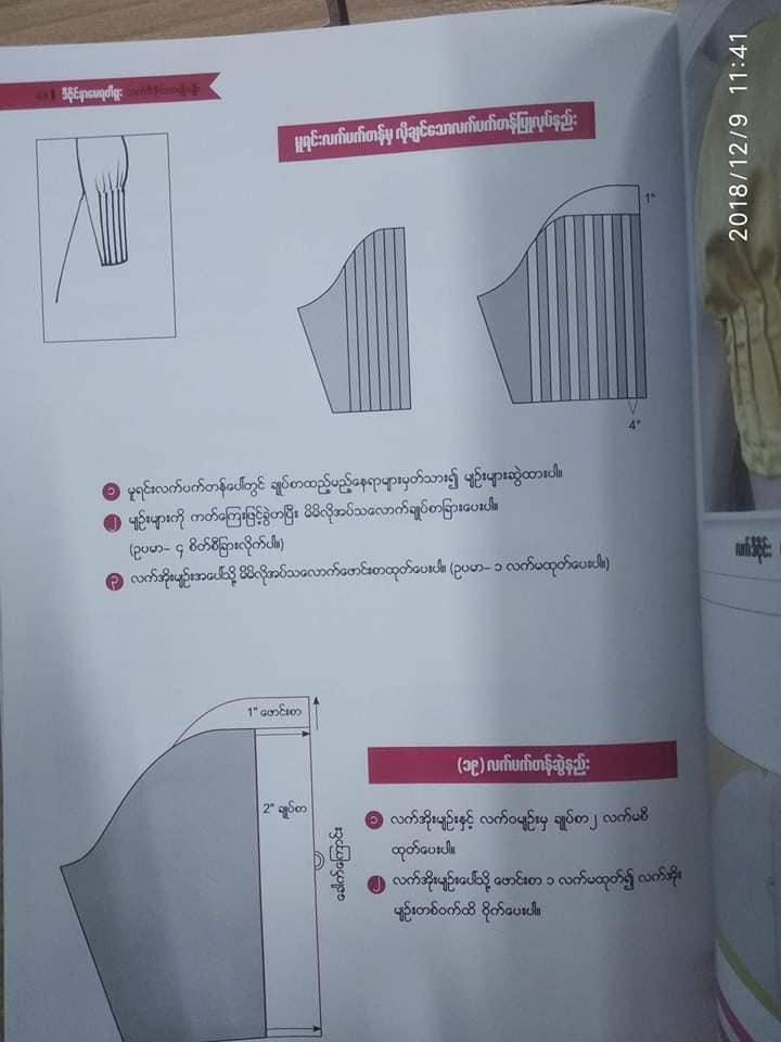 (၁)မူရင္းလက္ပတ္တန္ေပၚတြင္ ခ်ဳပ္စာထည့္မည့္ေနရာမ်ားမွတ္သား၍ မ်ဥ္းမ်ားဆြဲထားပါ။