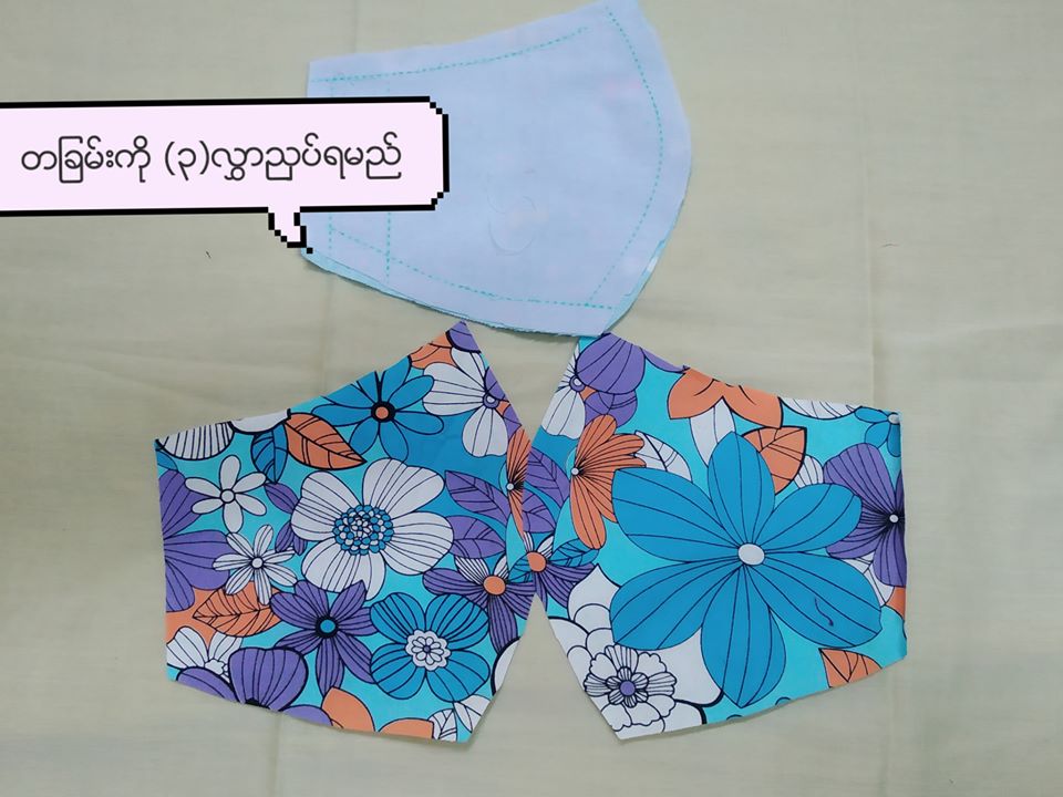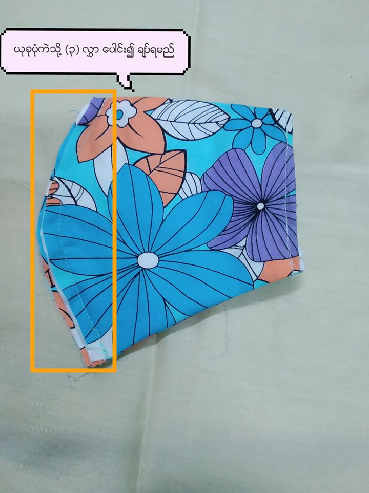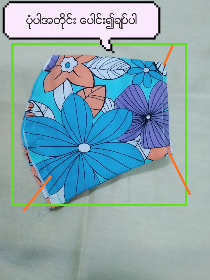 Mask ကို ချည် သား ဖြင့်ချုပ်ရမည်ဖြစ်ပြီး အောက်ပါပုံတွင်ပြထားသည့်အတိုင်းညှပ်ပေးရပါမည်။