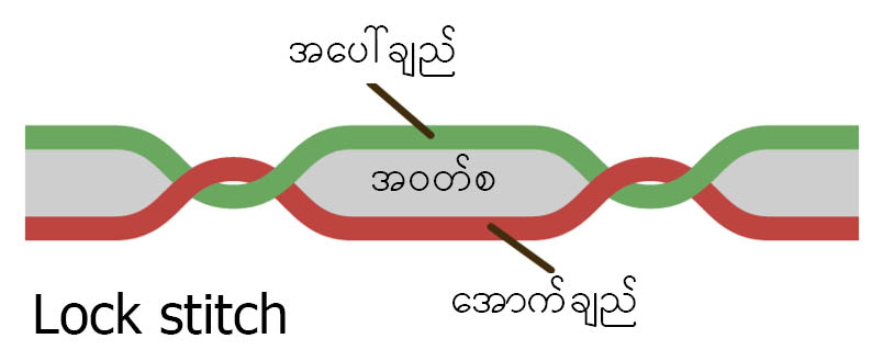 ကြင္းဆက္ခ်ိတ္ၿပီး ခ်ဳပ္ေပးျခင္းျဖင့္ အနားသတ္မွာ လိပ္ၿပီးခ်ဳပ္ထားတာမ်ဳိး ရဖုိ႔ကုိေတာ့ ခ်ည္ ၅ ခု ပါတဲ့ ဓားစက္နဲ႔ ခ်ဳပ္ၾကတယ္။